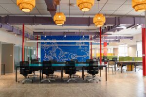 Our coworking space includes the latest office amenities such as ergonomic furniture, high-speed internet, modern conference rooms, collaborative areas, private booths, an in-house cafe, and relaxation areas—all designed to enhance productivity and creativity.